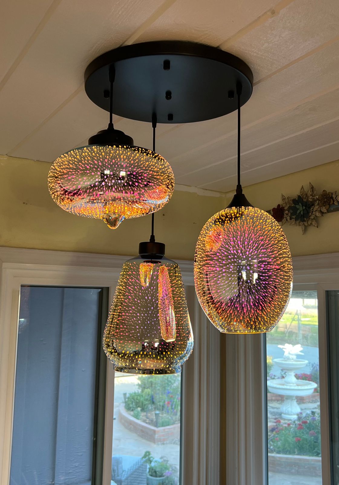 I just had this pendant light installed a day or so ago. The installation went smoothly, and the result was just as pictured on the Sofary website. I used Wiz smart bulbs, and by using their app, I can get lots of various lighting effects, changing the colors depending on which theme I choose from the app. Without using their app, by just switching the lights on, you will get the effect as shown in my photo, and the amount of light emitted is sufficient for whatever you would normally need.