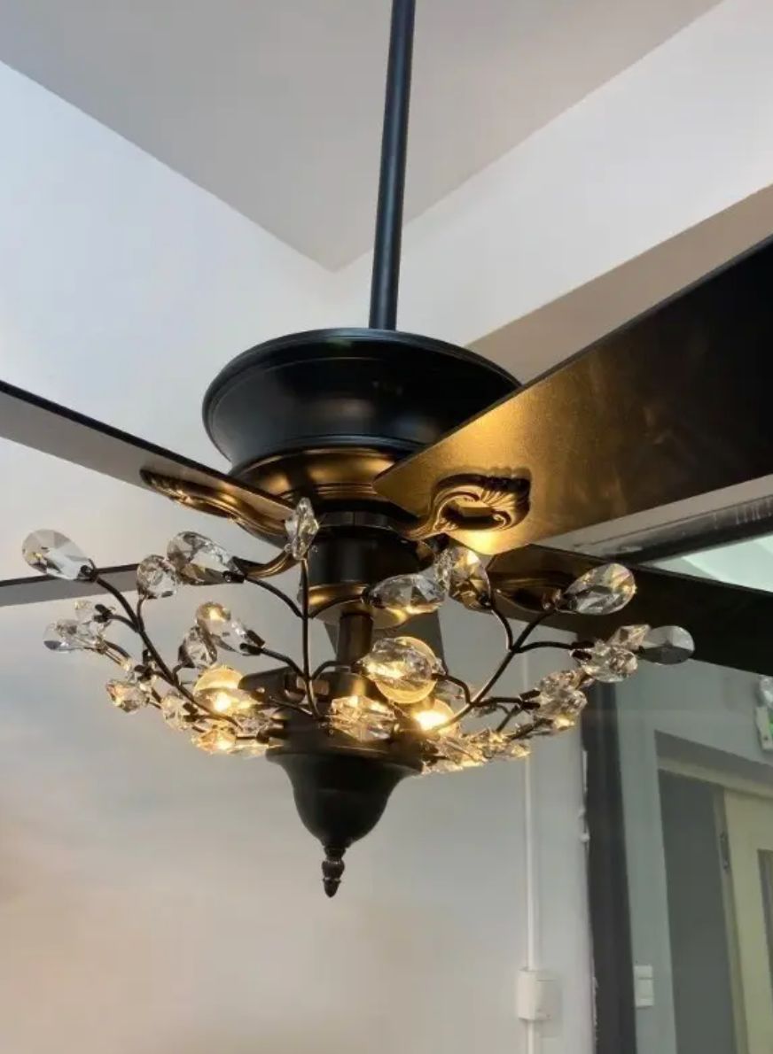 * It is a combination of a reversible ceiling fan and crystal chandelier, with Reversible Motor & Blades, cooling you in summer and circulating air in winter.