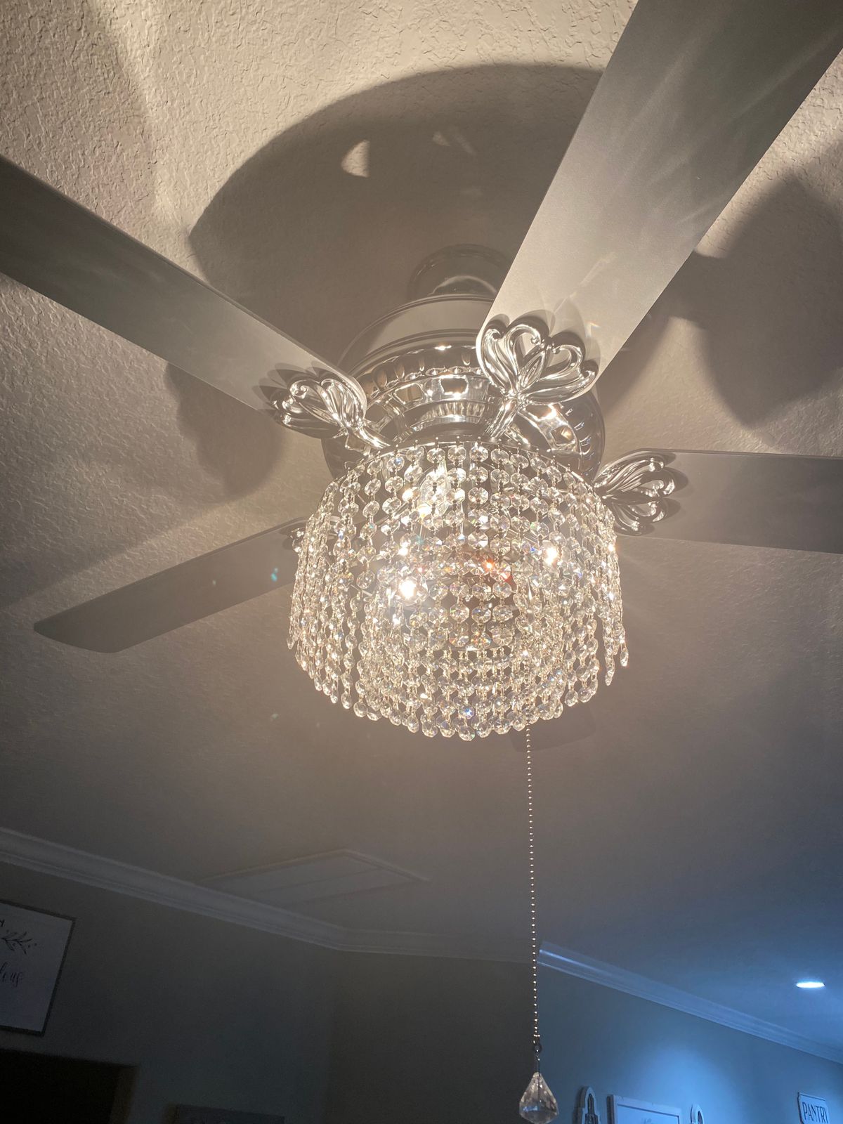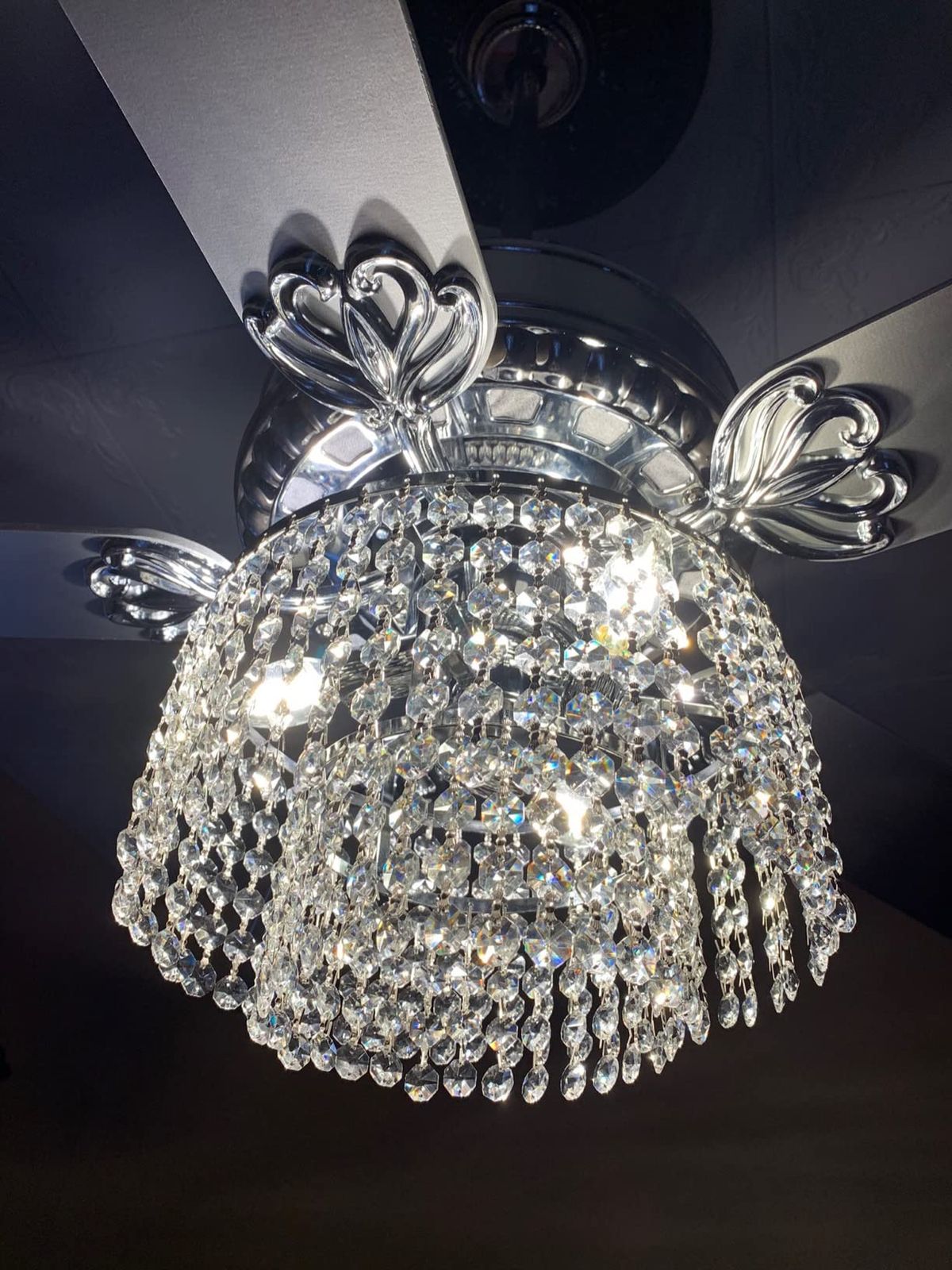 - Five chrome finish blades, Round Raindrop Crystal Lampshade, Fandelier