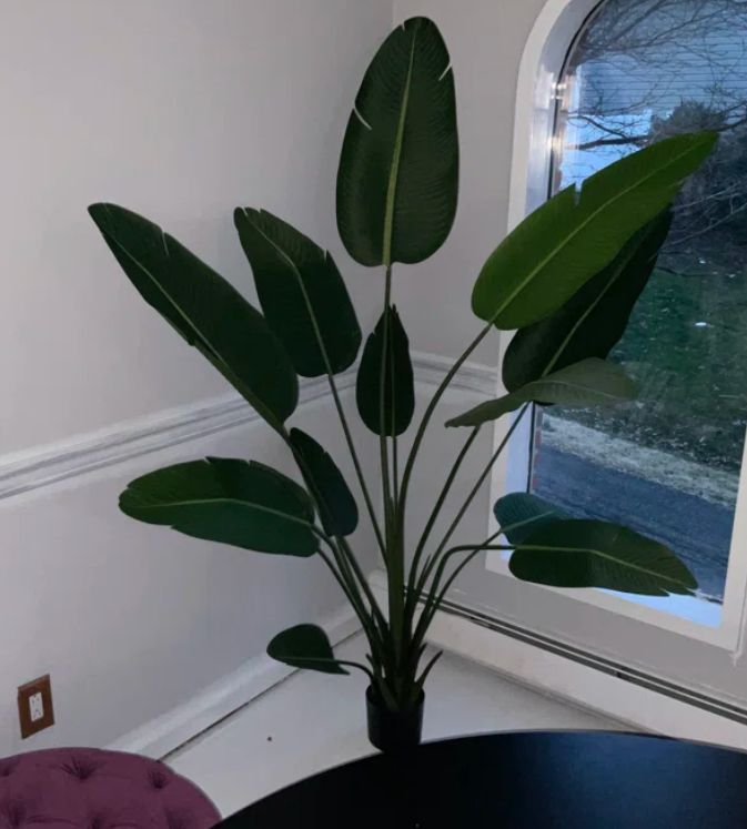 Add a fresh, tropical touch to your space with this lifelike artificial banana leaf tree. Designed with layered, soft-touch leaves and natural green tones, it brings the look of real greenery without the need for watering or sunlight. The flexible, removable leaves allow easy shaping after unpacking, while the sturdy pot provides stable support for everyday display. Perfect for living rooms, offices, bedrooms, or entryways, this faux tree offers long-lasting beauty and effortless style year-round.