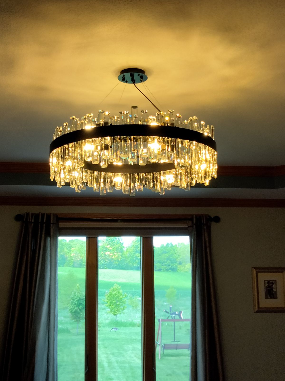 This chandelier takes my master bedroom to a whole new level, it's breathtaking! I had installed it with amber lights at first but I think I'm going to put white bulbs in instead. Definitely a two person job of installing because it's got some heft to it. Very well made and packaging was the best I've ever seen. I will be purchasing from Sofary again in the future.