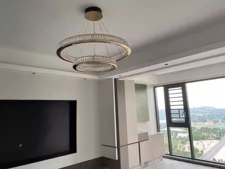 Transform your space with our Crystal Ring Chandelier 2-Tier LED Ring Chandelier. Luxurious crystals and 2 tiers of LED rings create a mesmerizing lighting experience that adds elegance and ambiance to any room. Elevate your home décor and impress guests with this statement piece.