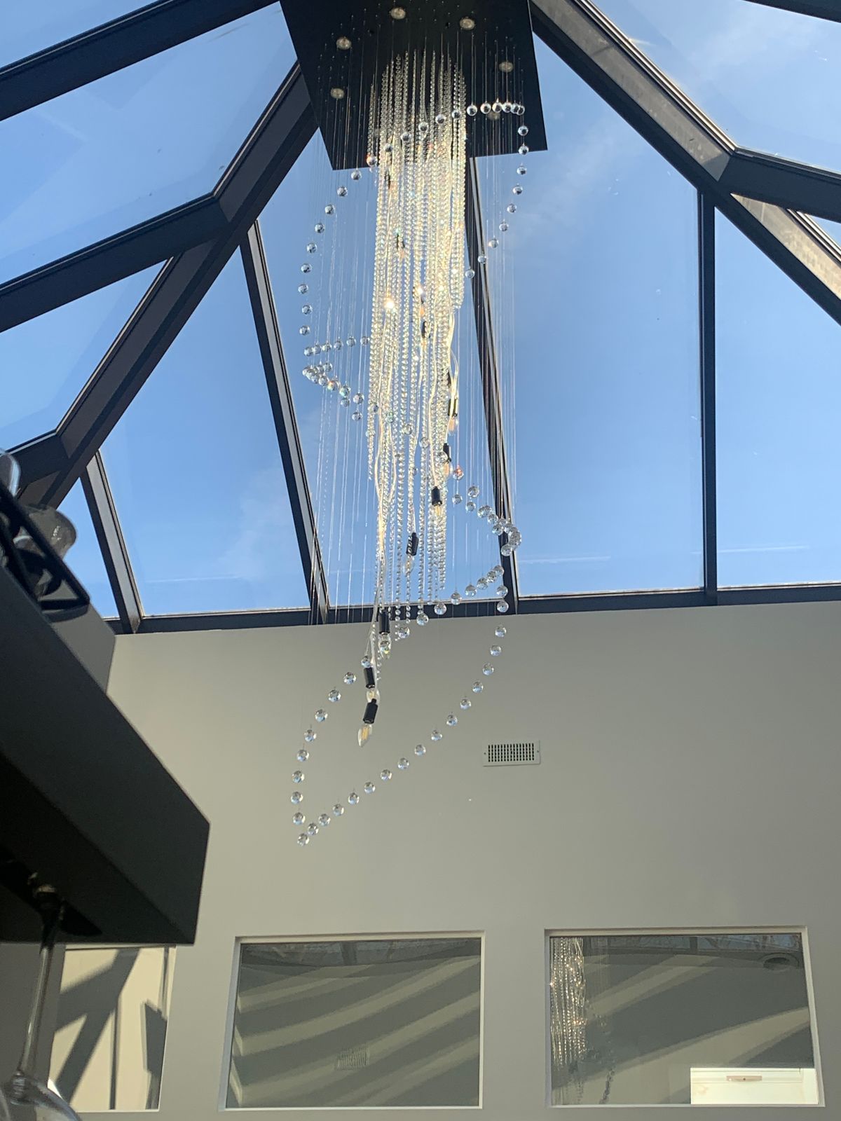 I bought the smaller option thinking it was just shorter, but it has smaller crystals, less crystals, and looks out of place next to my other 94” Sofary Chandeleir. I thought they’d be comparable since they were identical height, but the dual spiral looks thin and has smaller crystals, super imbalanced