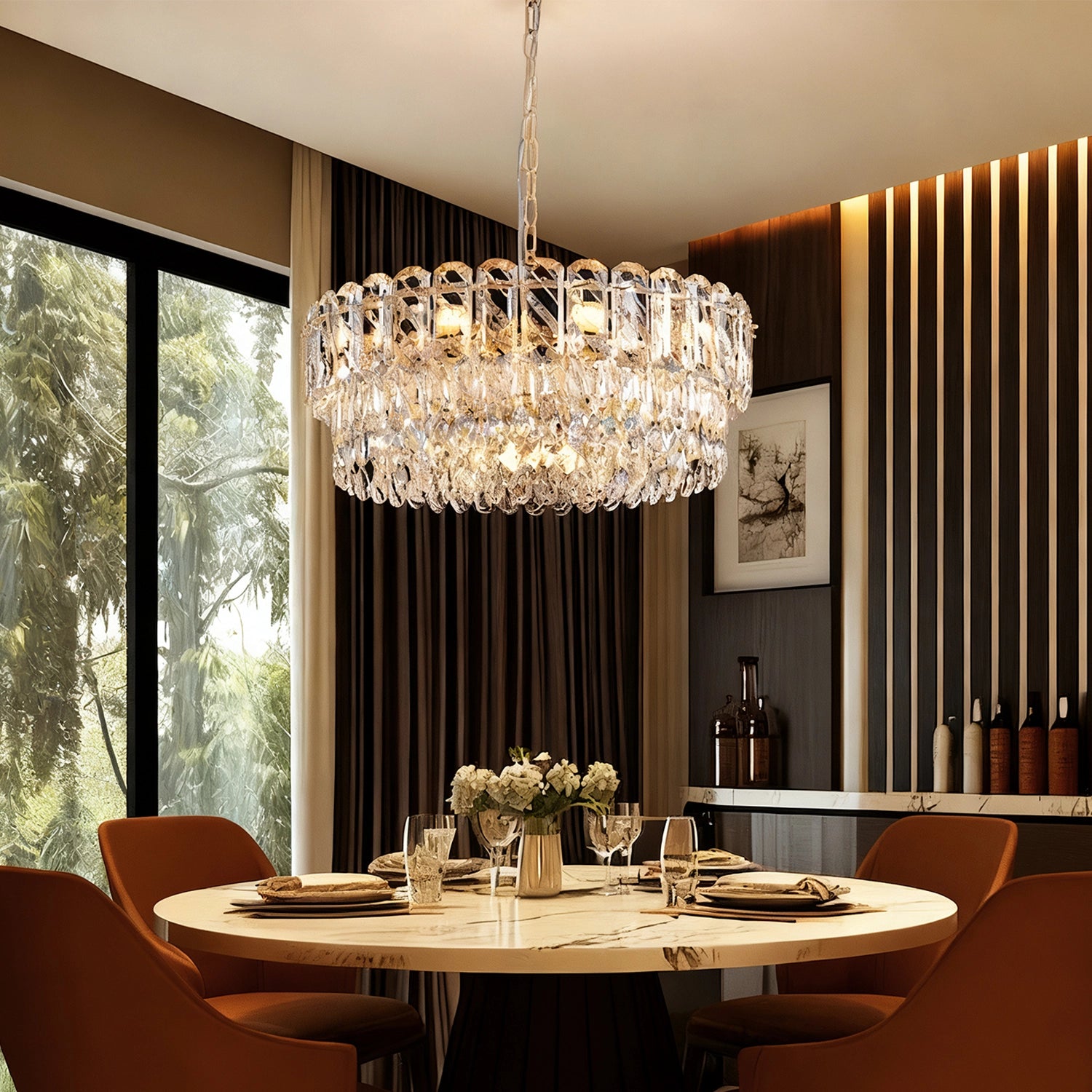 - ✅ 【Modern Round Design】 – Sleek gold frame with cascading crystal layers adds timeless elegance to dining rooms, living rooms, or entryways.