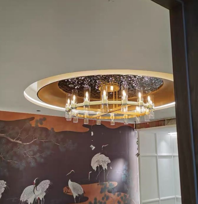 Bring timeless sophistication to your home with this artfully designed chandelier—where structure meets soul. Featuring a bold circular frame in a rich black and gold finish, paired with sleek glass tube shades, it casts a soft, inviting glow that elevates any space. Inspired by classic candle chandeliers but reimagined with clean symmetry, this fixture is perfect for today’s refined interiors. Adjustable height options offer versatility for different ceiling types, while support for E12 dimmable bulbs lets you create the perfect ambiance for every moment.