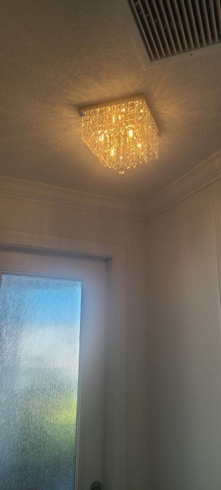 Bring a modern and stylish look to your home with this crystal flush mount ceiling light. Featuring a sleek metal body and delicate crystal accents, this elegant light is perfect for hallways, bedrooms, and more. Enjoy soft illumination and the beauty of modern design in any space.