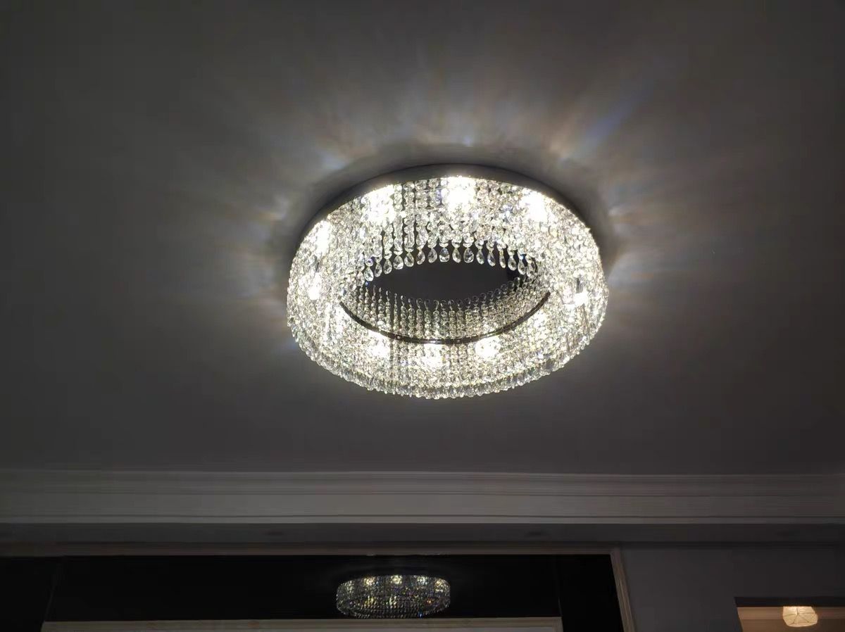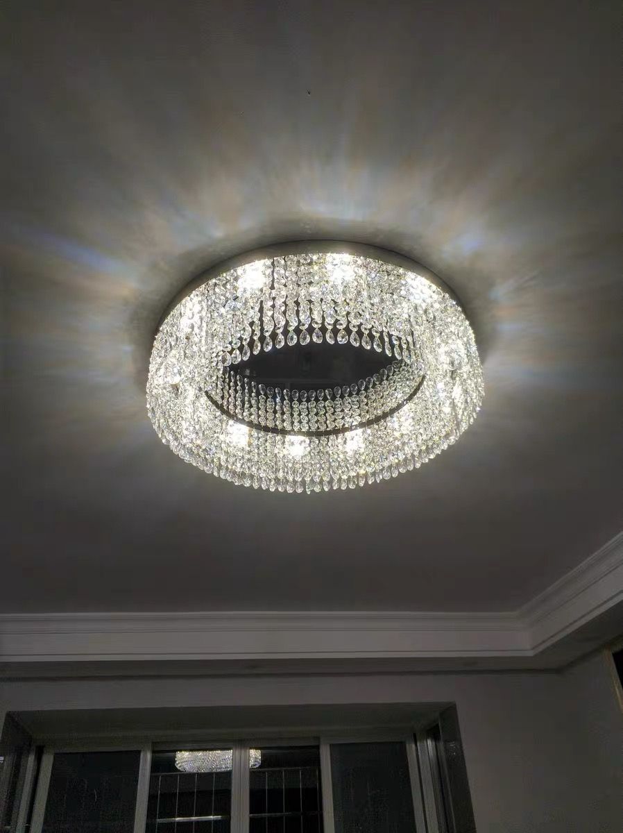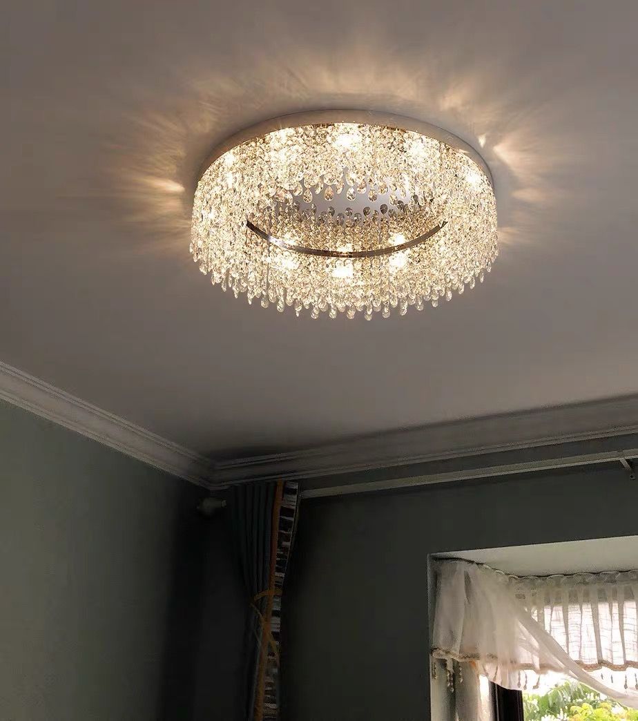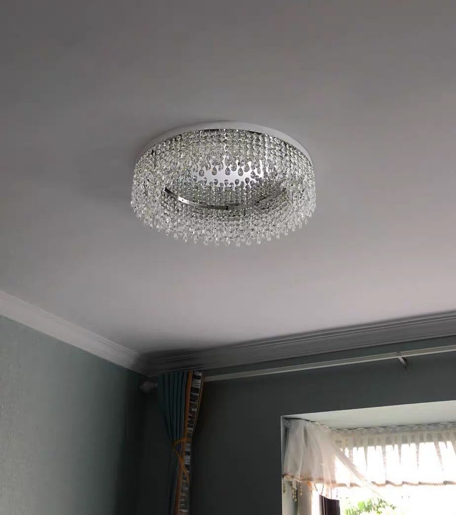The right ceiling light can completely change how a room feels. This round crystal flush mount chandelier is designed for spaces where you want both elegance and practicality. It sits close to the ceiling while still delivering a soft, sparkling glow that makes the room feel warm and inviting.