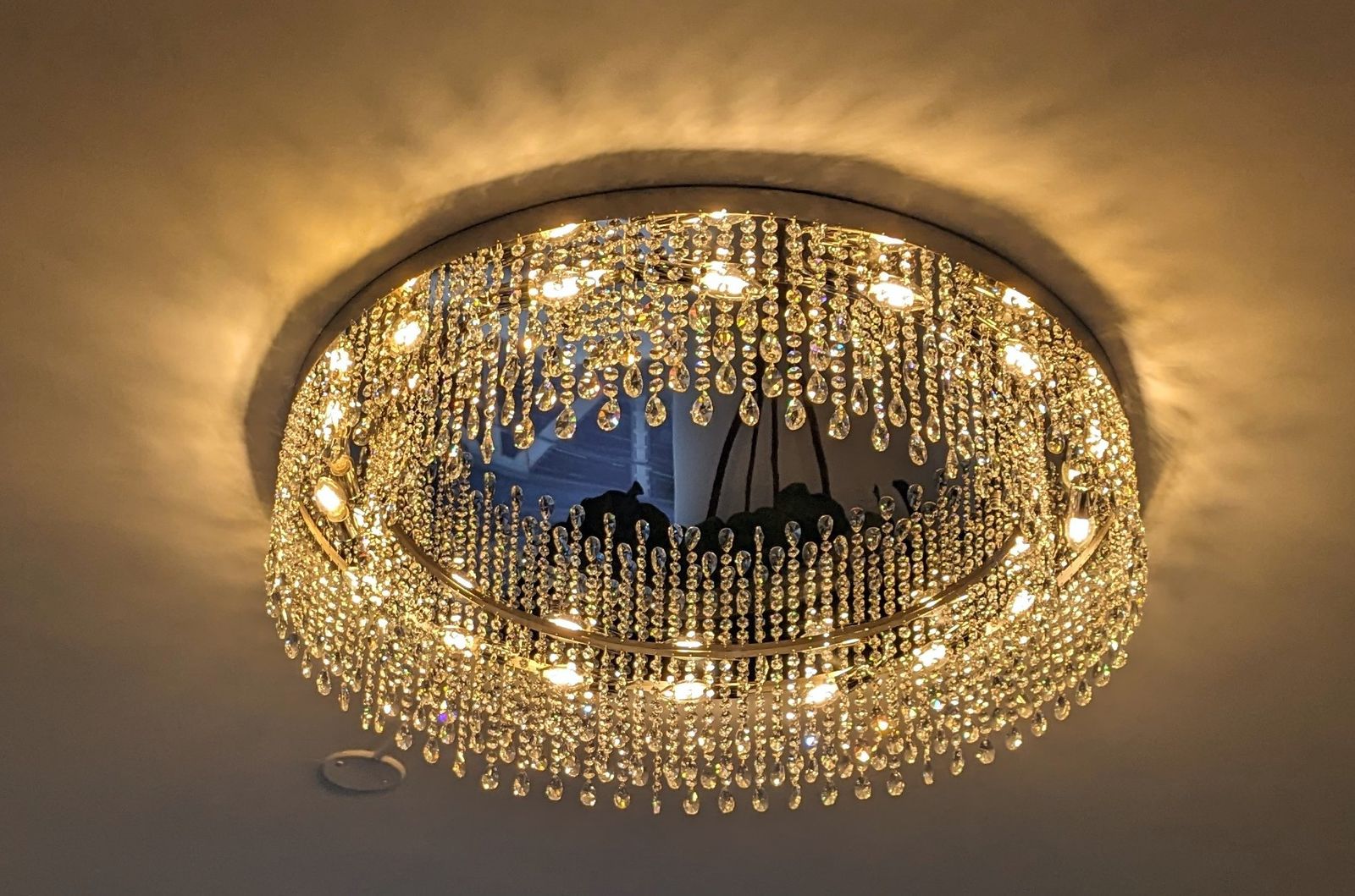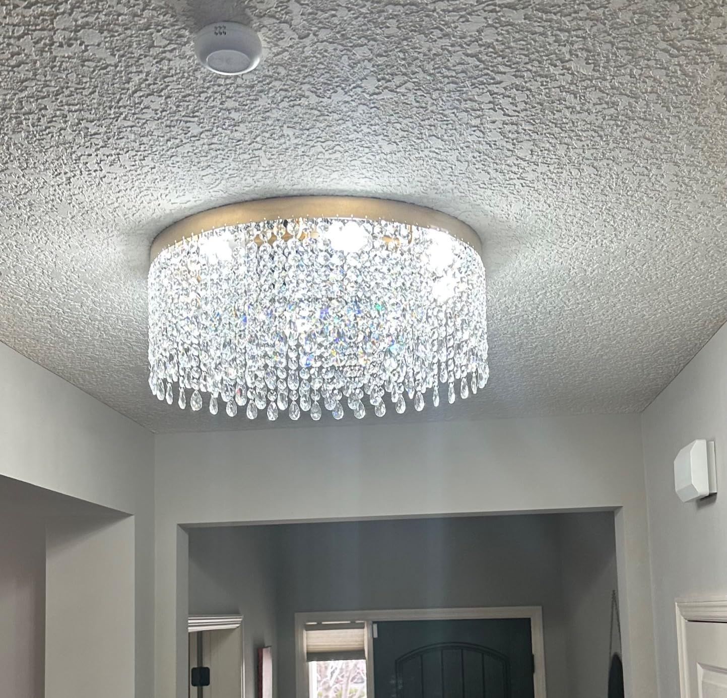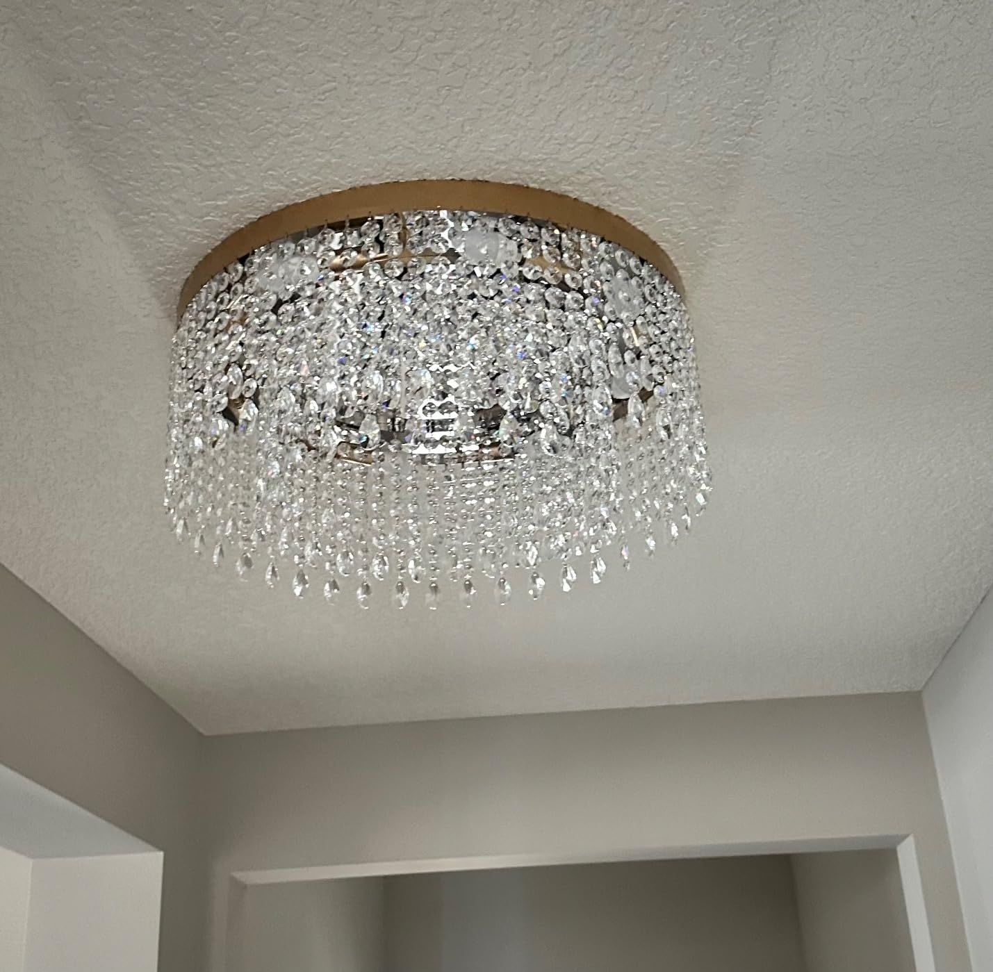 - Round Crystal Chandelier, Ceiling Light Fixtures, Flush Mount Ceiling