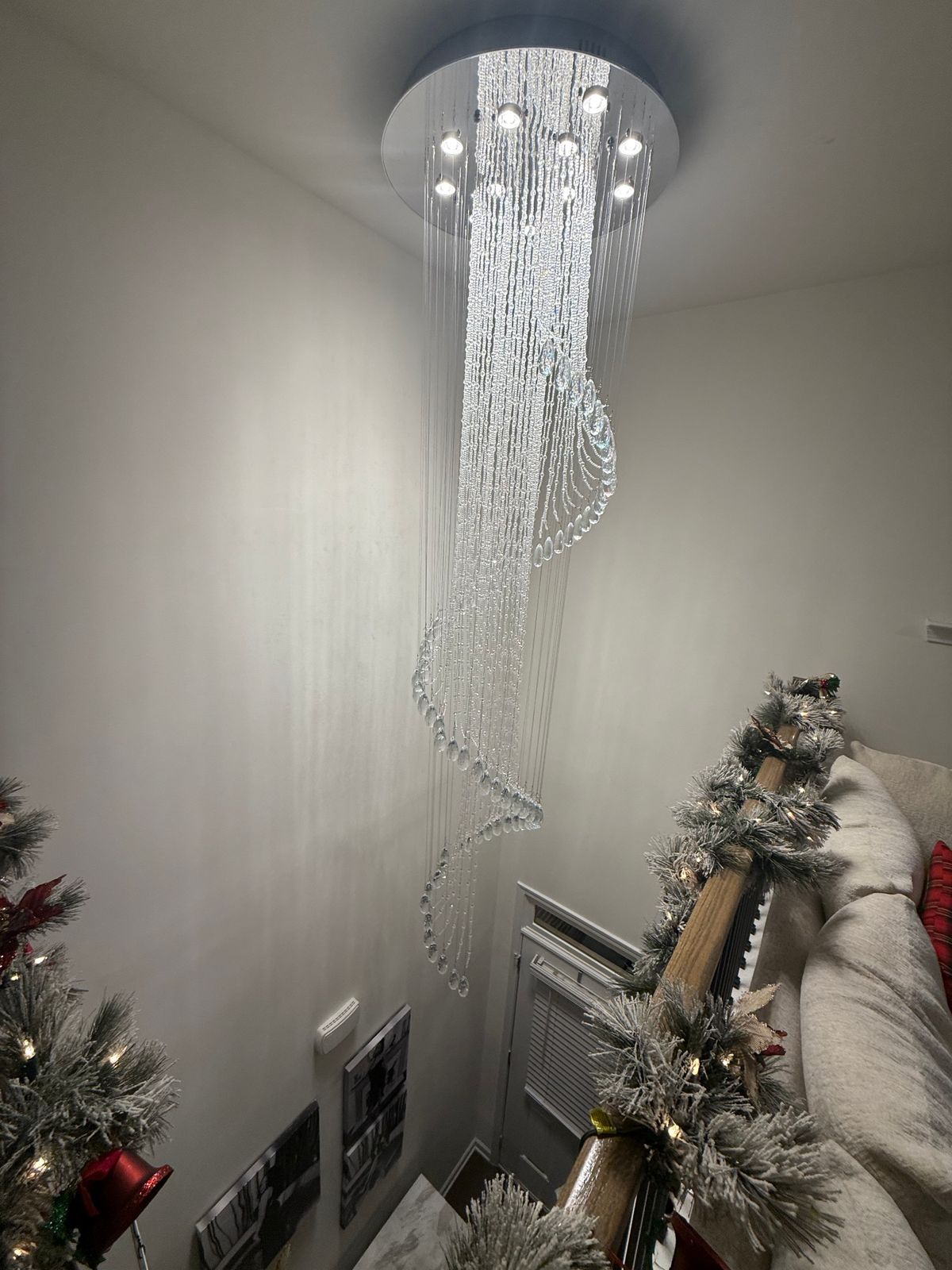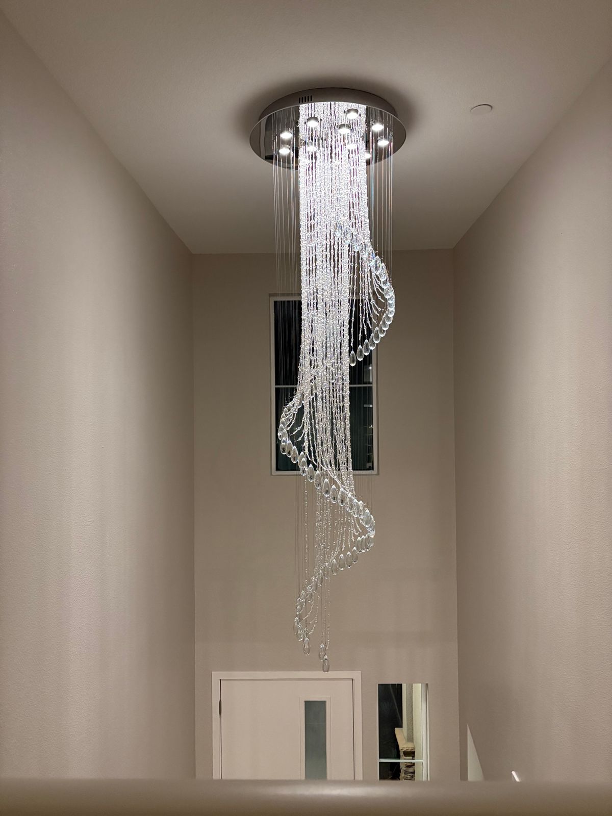 This is the 2nd spiral raindrop chandelier we've installed for a client. They both love the drama and elegance they bring to the space.