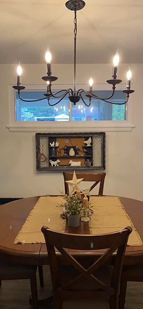 Add a touch of sophistication to your interior with this modern farmhouse black metal candle chandelier. Crafted from durable metal and featuring a contemporary design, it is sure to provide a stylish focal point to your home.