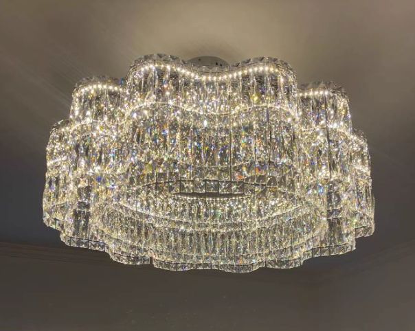 The modern floral crystal chandelier combines a stunning flower-shaped design with a chrome-finished stainless steel frame and shimmering K9 crystals. Its adjustable height and dimmable LED lights, controlled by a convenient remote, make it perfect for creating the ideal ambiance in any modern space. Whether in a dining room, living room, or bedroom, this elegant chandelier adds a touch of luxury and style to your home.