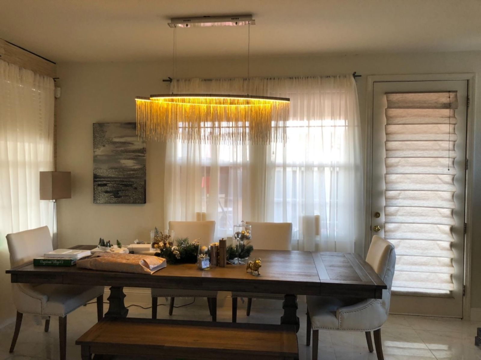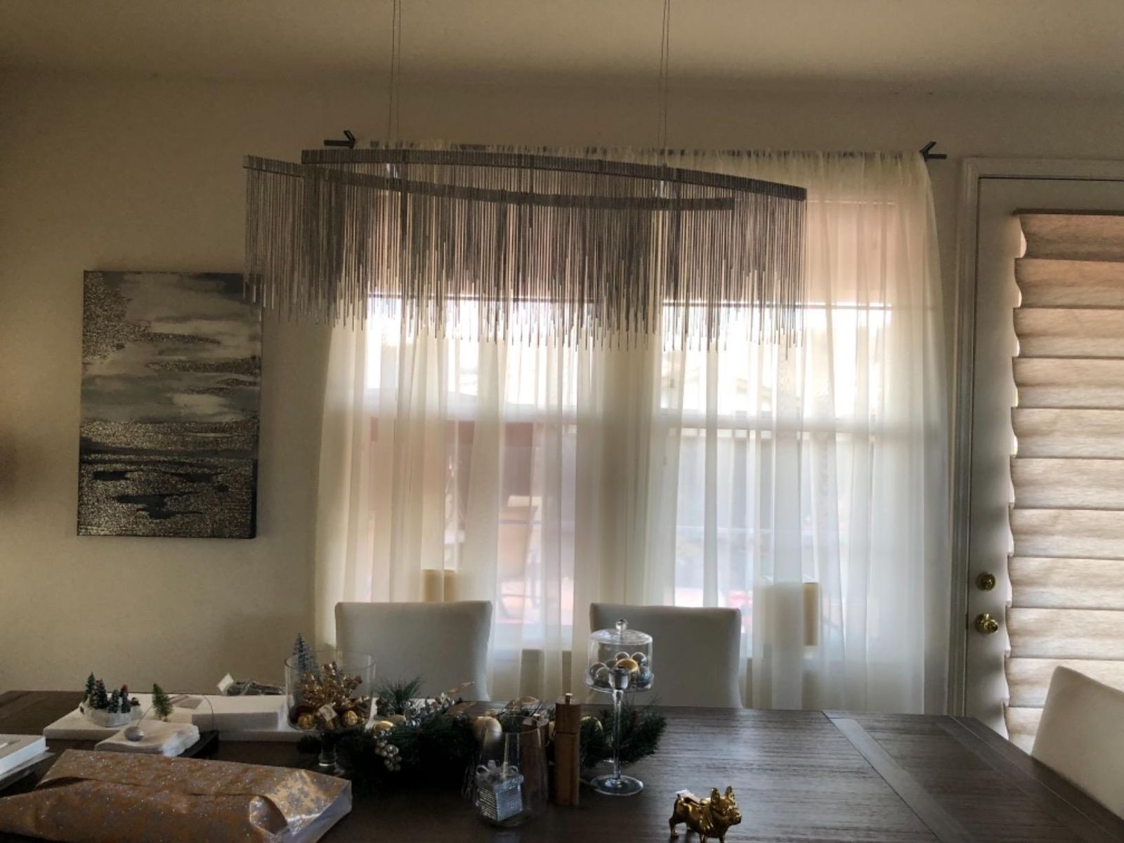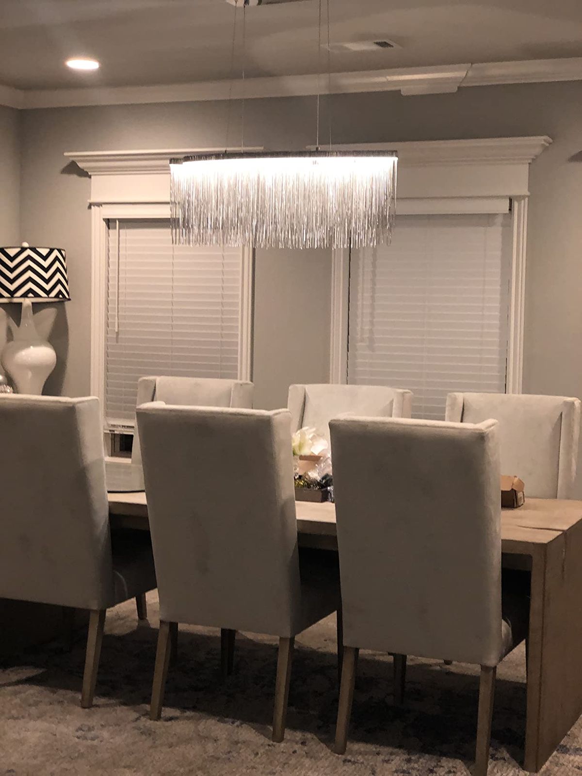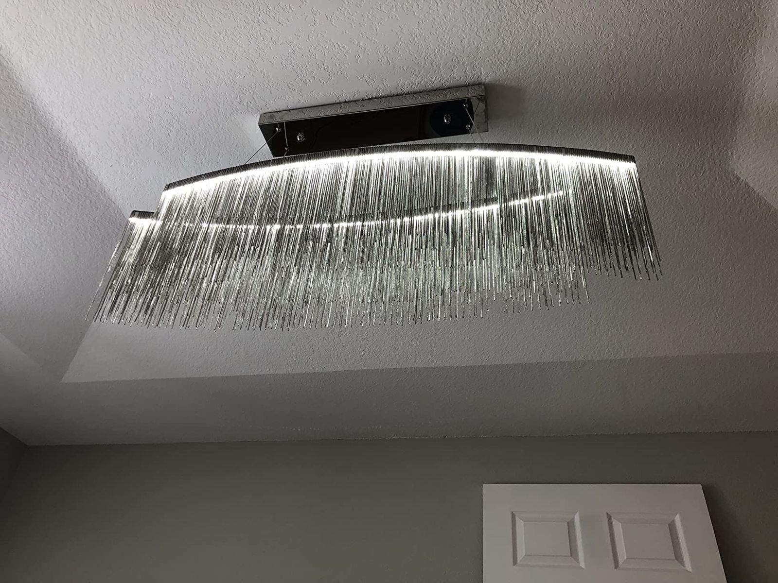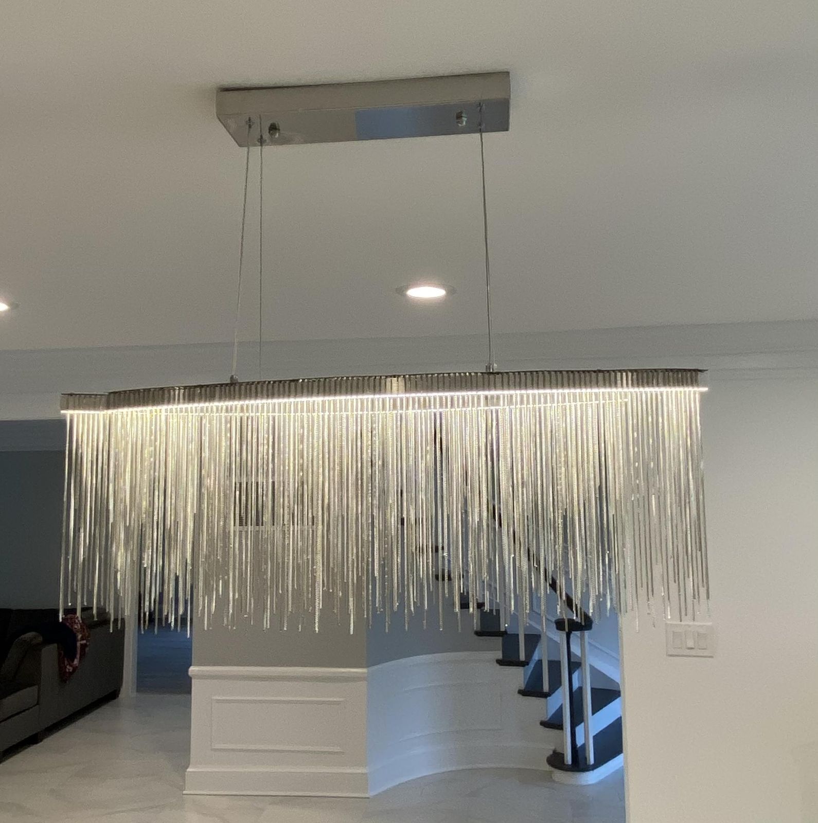 This modern aluminum chandelier is perfect for a dining room. Its linear design adds a contemporary look to any space, while its sturdy materials guarantee years of dependable use. The aluminum construction also provides a subtle yet elegant effect.