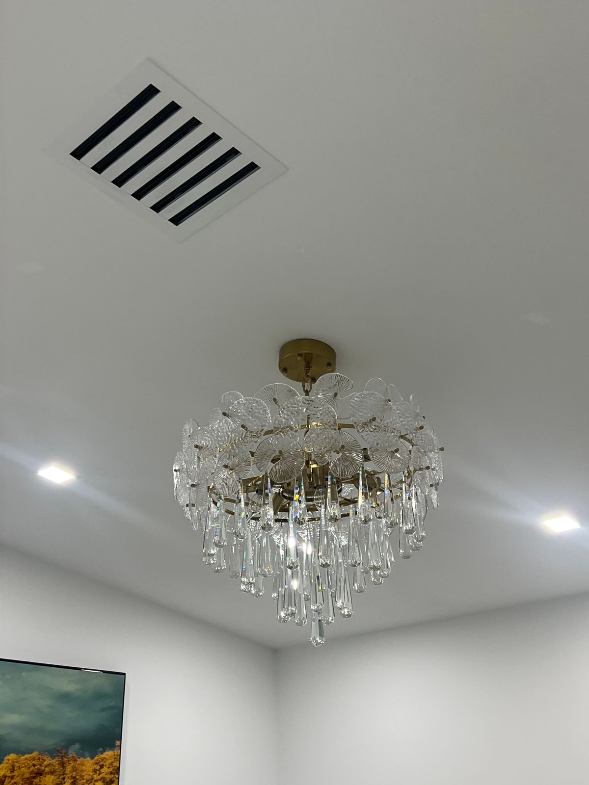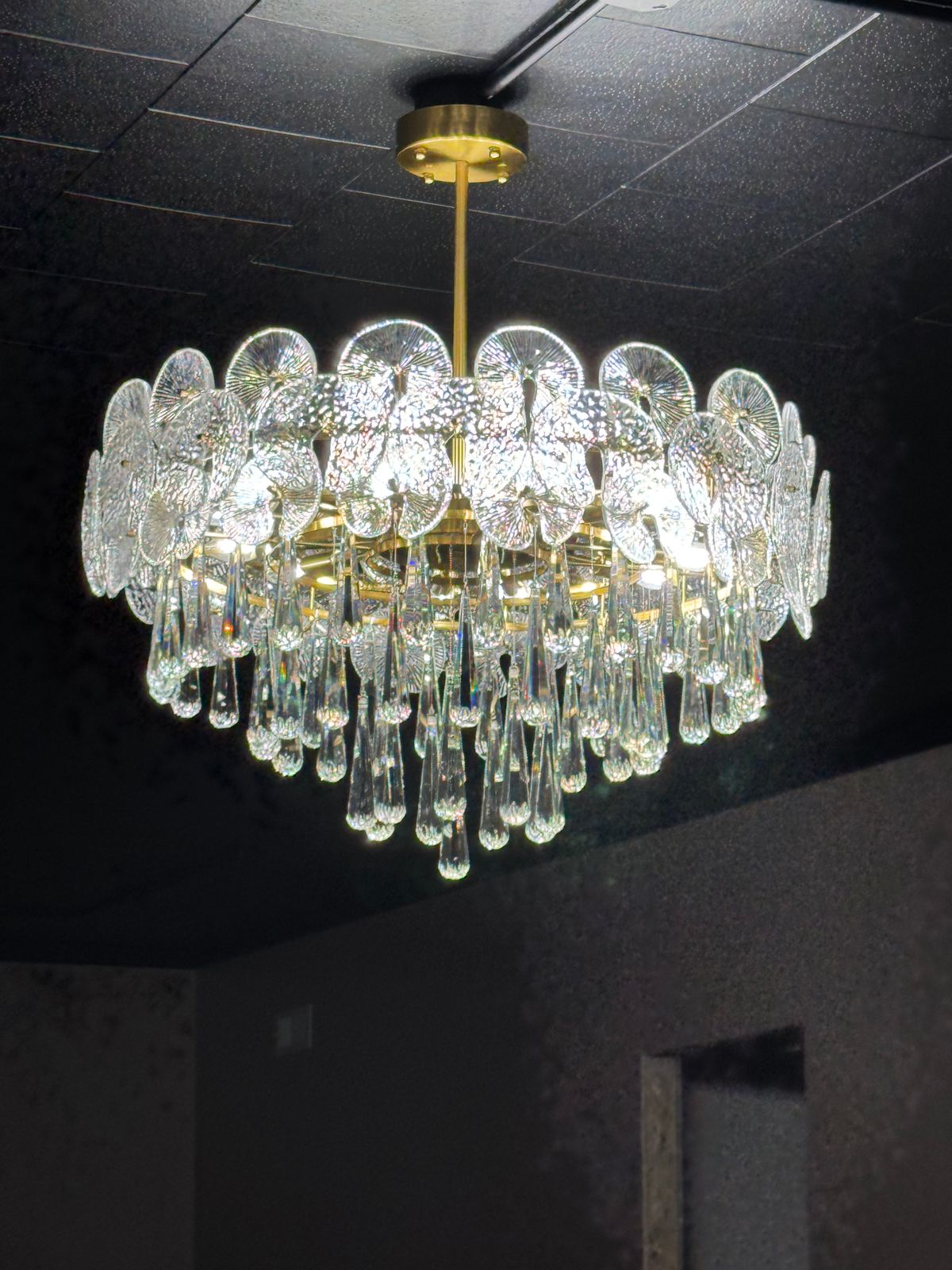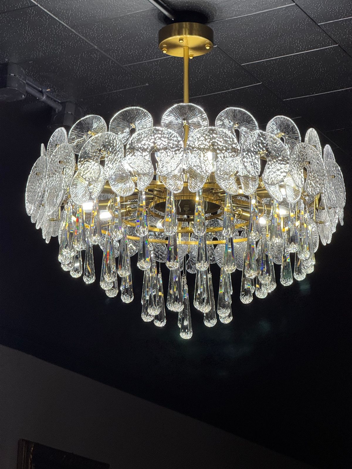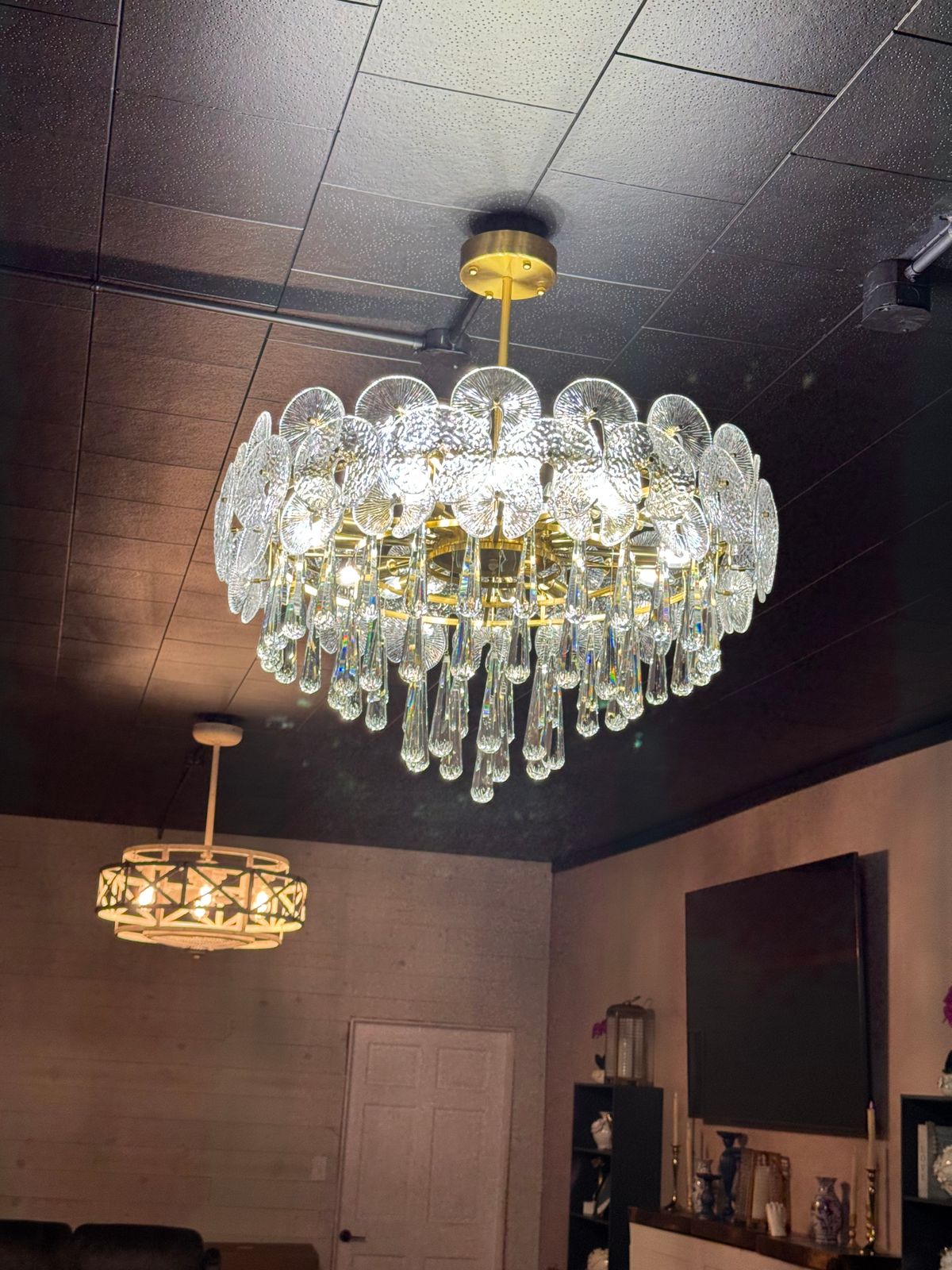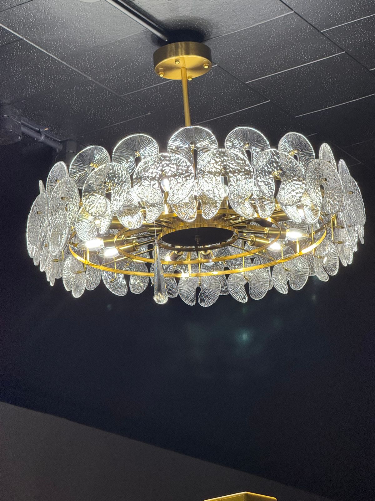 I purchased the Modern luxury Gold glass chandelier a while back and recently had it installed and when I say gorgeous this chandelier is like eye candy it is so beautiful and I highly recommend this and Sofary lighting because everything was in the box(no missing pieces)that was delivered with outstanding care and the chandelier is as pictured. Keep up the great work!!