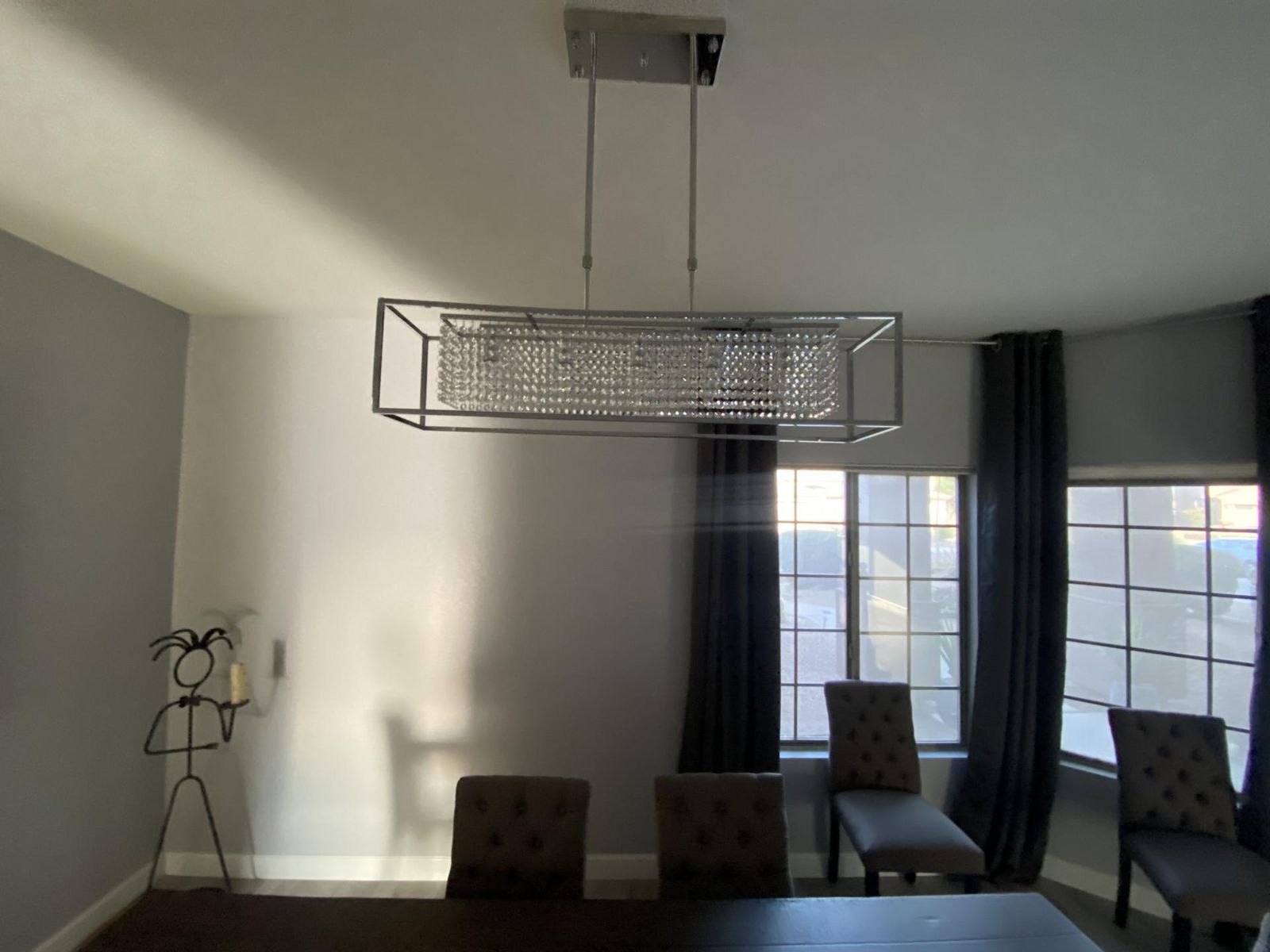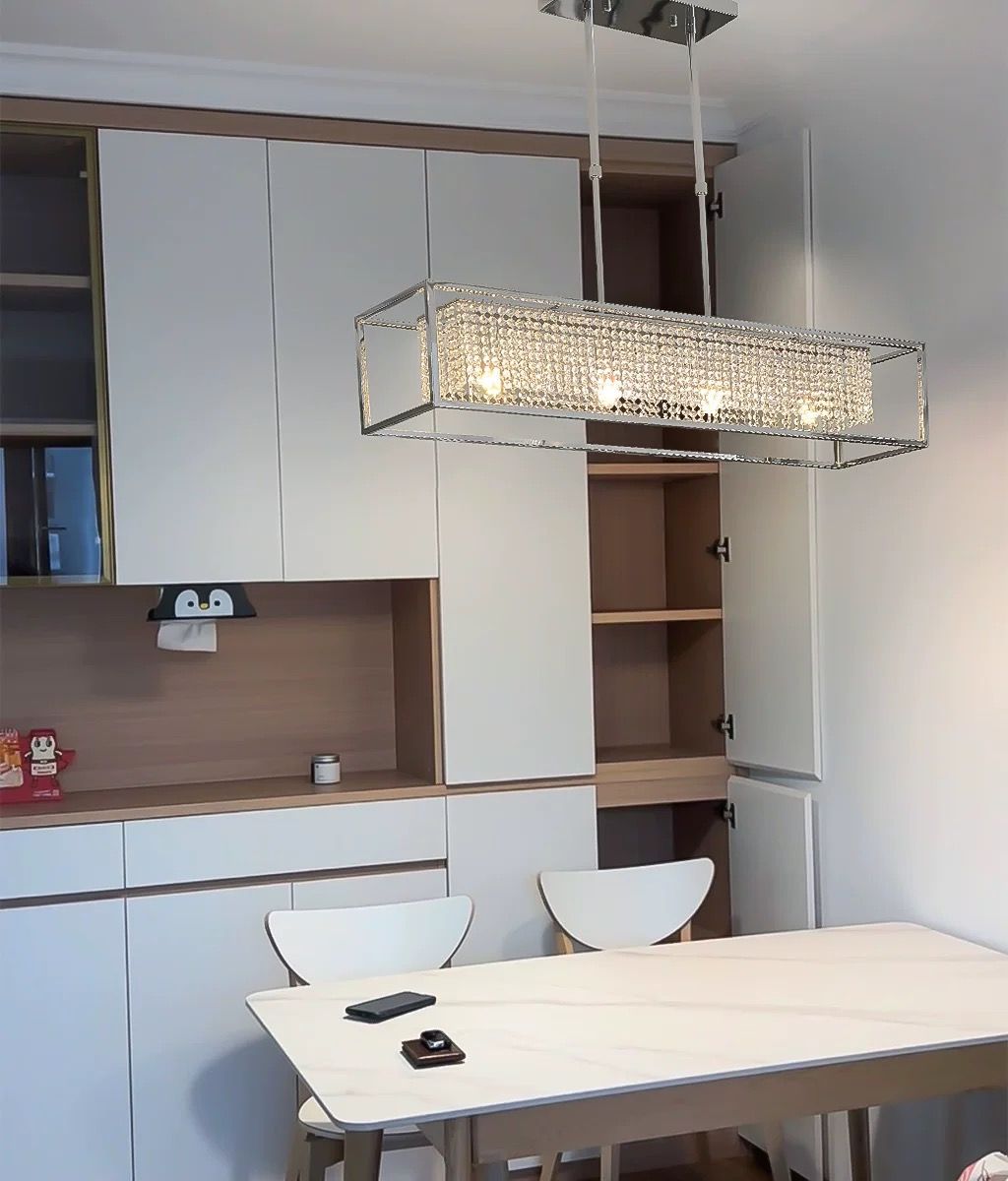 - Modern Rectangular Chrome Frame Pendant Light, Dining Room Pendant Light