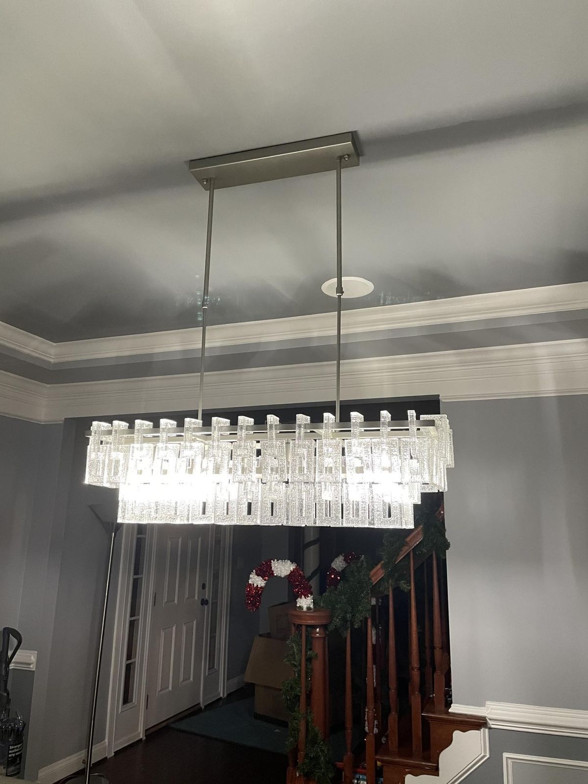 Chandelier looks great and nice material. Looks gorgeous after installation. Instructions were very simple and easy to install.