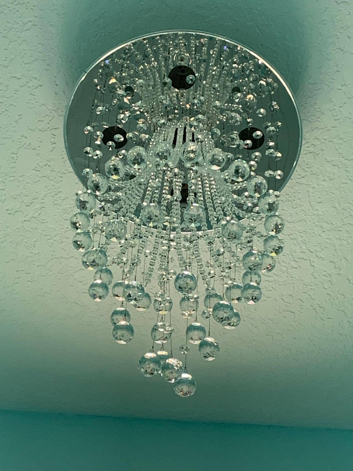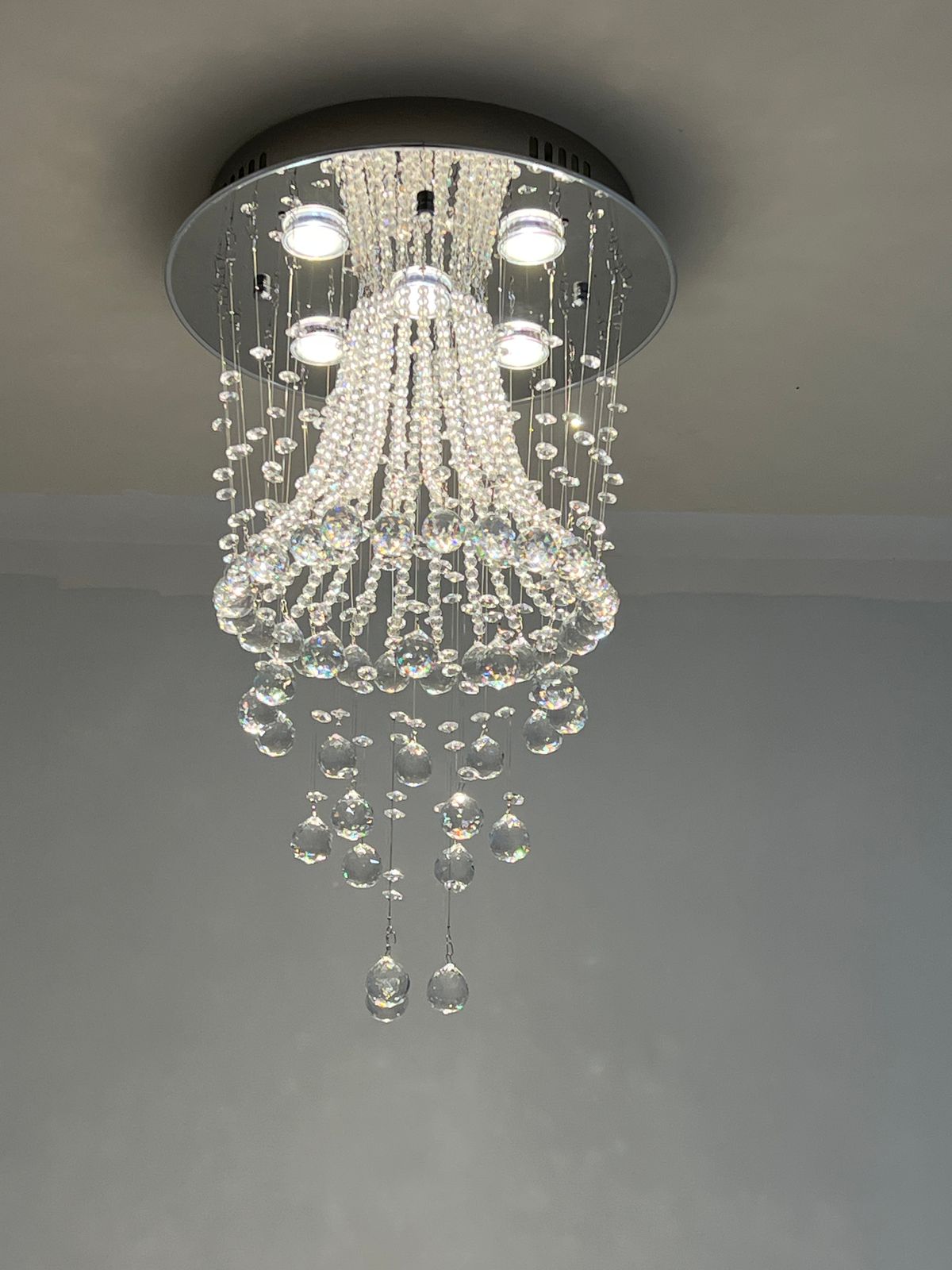 This modern flush mount crystal chandelier brings a touch of luxury to any space. Its jellyfish design adds a unique style to your décor with its round shape and reflective crystals. For a stylish and classic look, this chandelier is the perfect addition.