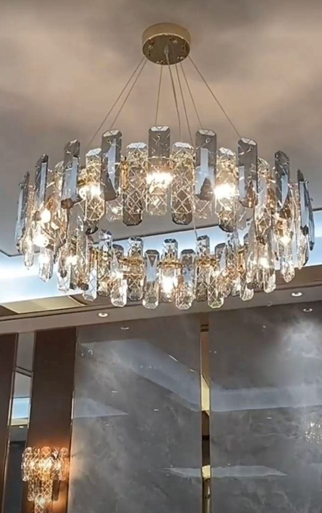 Elevate your space with our Round Crytsal Shade Gold Chandelier! The elegant round crytsal shade and gold finish add a touch of luxury to any room. Illuminate your space with this stunning chandelier and create a warm, inviting atmosphere. Perfect for adding a touch of sophistication to your home.
