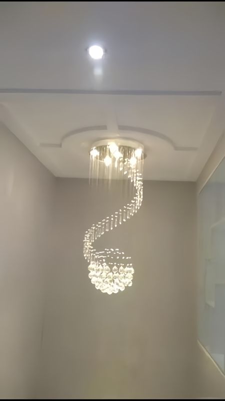 - Modern Single Spiral Rain Drop Crystal Chandelier, K9 Crystal with Chrome Base, Staircase Ceiling Light