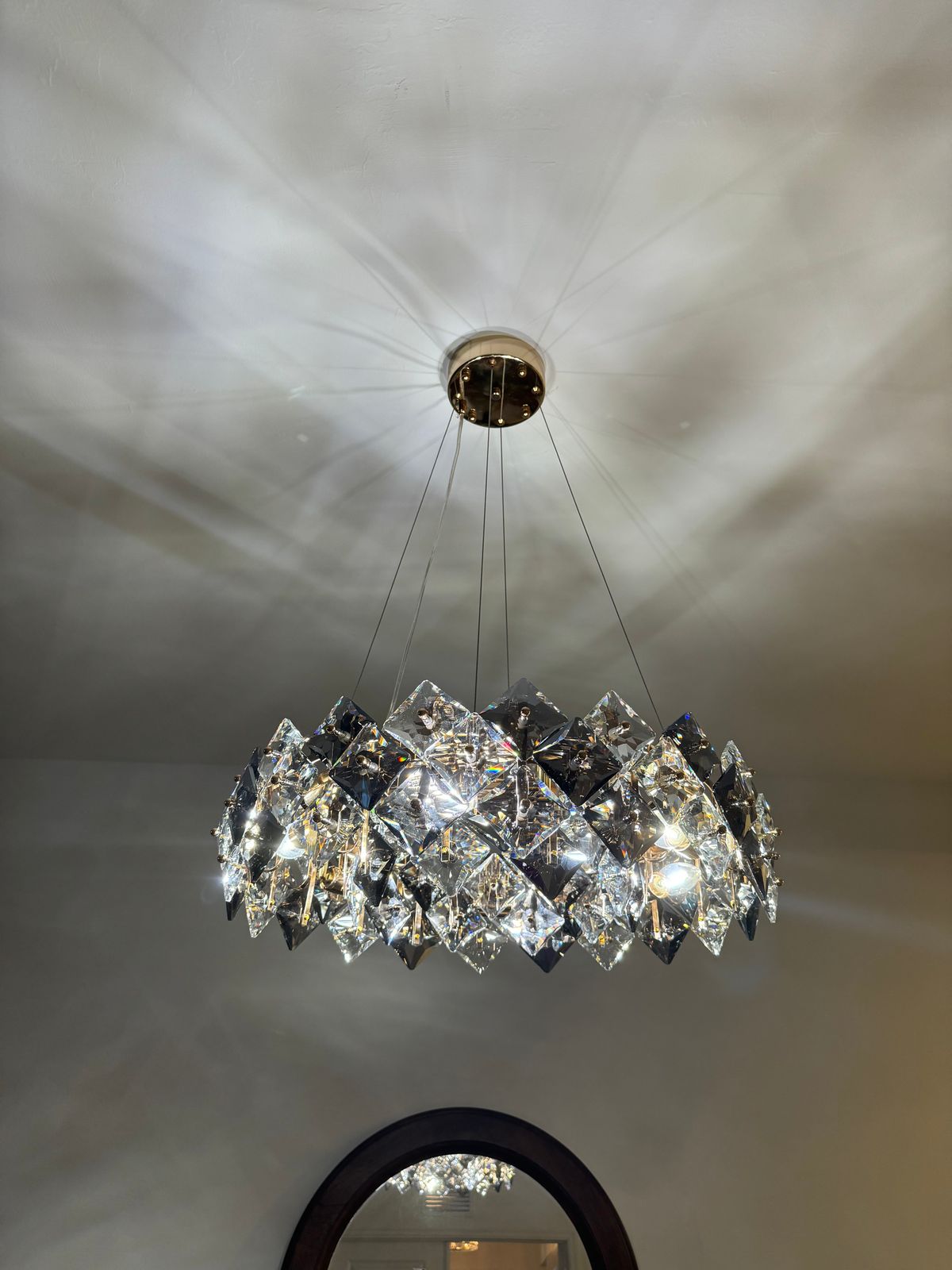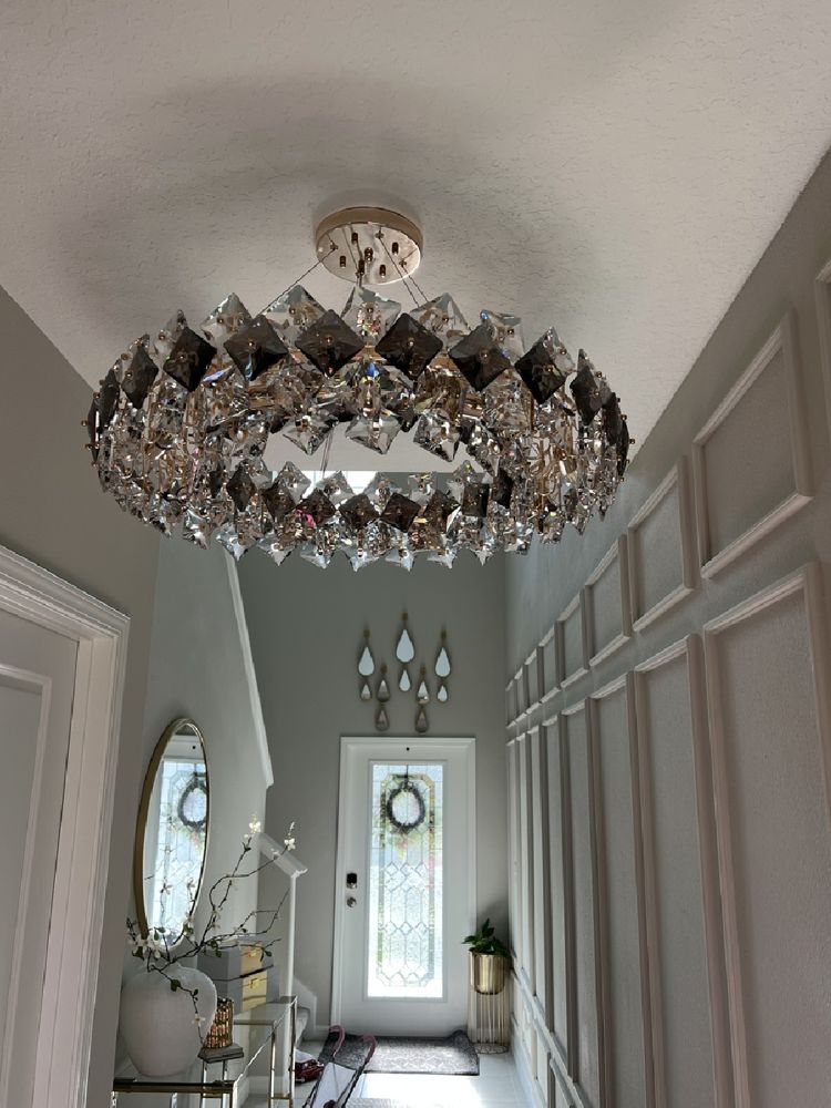 Obsessed with this chandelier! It gives off a warm, luxurious glow and adds a glamorous touch to our living room. The crystal prisms catch the light in all the right ways, creating a beautiful ambiance. It looks even better in person than online. Couldn’t be happier with this purchase — worth every penny!